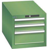 Dílenská zásuvková skřín Lista, 3 zásuvky: 2x75mm + 1x 150mm, 411x725x383 mm, zelená