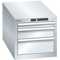 Dílenská zásuvková skřín Lista, 3 zásuvky: 1x50mm + 1x100mm + 1x 150mm, 411x725x383 mm, šedá