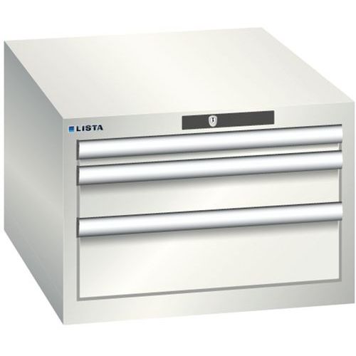 Dílenská zásuvková skříň LISTA, 3 zásuvky = 1x 50 + 1x 100 + 1x 150mm , 564x725x383mm, světle šedá