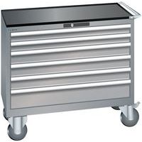 Dílenská zásuvková skříň Lista, 1023x572x962 mm, 6 zásuvky, šedá/stříbrná