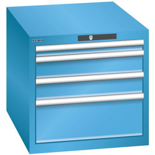 Dílenská zásuvková skříň LISTA, 564x725x533mm, 4 zásuvky, světle modrá