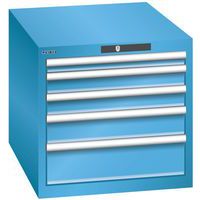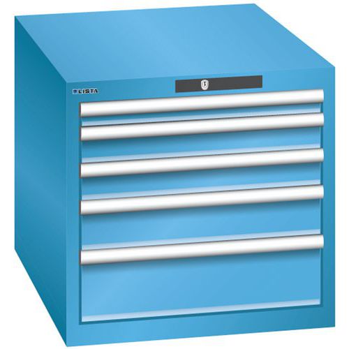 Dílenská zásuvková skříň LISTA, 564x725x533mm, 5 zásuvky, světle modrá