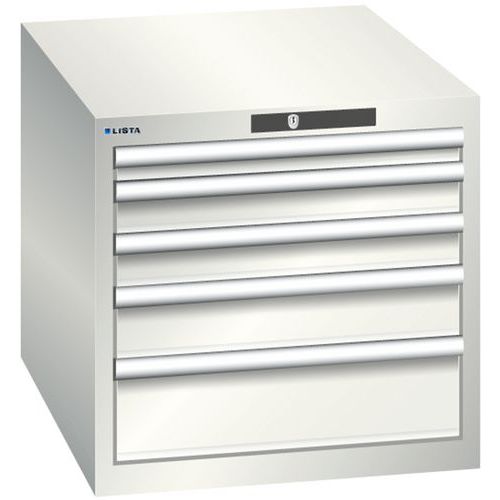Dílenská zásuvková skříň LISTA, 564x725x533mm, 5 zásuvky, světle šedá