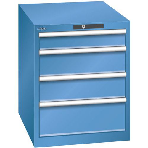 Dílenská zásuvková skříň LISTA, 564x725x700 mm, 4 zásuvky, modrá