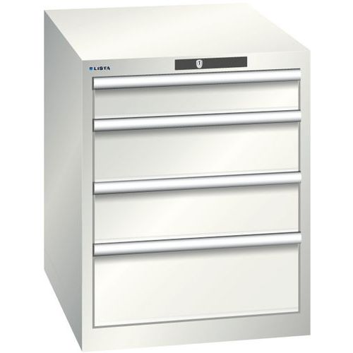 Dílenská zásuvková skříň LISTA, 564x725x700 mm, 4 zásuvky, světle šedá