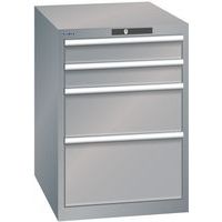 Dílenská zásuvková skříň LISTA, 564x725x800 mm, 4 zásuvky, šedá/stříbrná