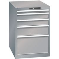 Dílenská zásuvková skříň LISTA, 564x725x800 mm, 5 zásuvek, šedá/stříbrná