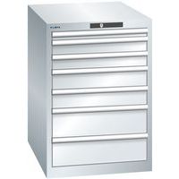 Dílenská zásuvková skříň LISTA, 7 zásuvek = 1 x 50 / 2 x 75 / 2 x 100 / 2 x 150, 564x725x800 mm, šedá