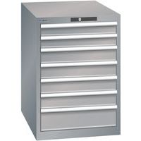 Dílenská zásuvková skříň LISTA, 7 zásuvek = 2 x 75 / 4 x 100 / 1 x 150, 564x725x800 mm, šedá/stříbrná