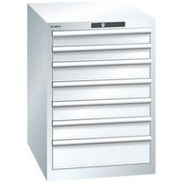 Dílenská zásuvková skříň LISTA, 7 zásuvek = 2 x 75 / 4 x 100 / 1 x 150, 564x725x800 mm, bílá