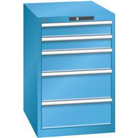 Dílenská zásuvková skříň LISTA, 5 zásuvek = 2x 100 + 1x 150 + 2x 200mm, 564x725x850mm, světle modrá