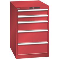 Dílenská zásuvková skříň LISTA, 5 zásuvek = 2x 100 + 1x 150 + 2x 200mm, 564x725x850mm, červená