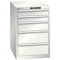 Dílenská zásuvková skříň LISTA, 5 zásuvek = 2x 100 + 1x 150 + 2x 200mm, 564x725x850mm, světle šedá