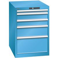Dílenská zásuvková skříň LISTA, 5 zásuvek = 1x 50 + 2x 100 + 1x 200 + 1x 300mm, 564x725x850mm, světle modrá