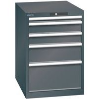 Dílenská zásuvková skříň LISTA, 5 zásuvek = 1x 50 + 2x 100 + 1x 200 + 1x 300mm, 564x725x850mm, černá