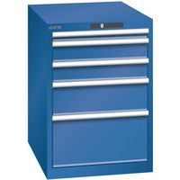 Dílenská zásuvková skříň LISTA, 5 zásuvek = 1x 50 + 2x 100 + 1x 200 + 1x 300mm, 564x725x850mm, tmavě modrá