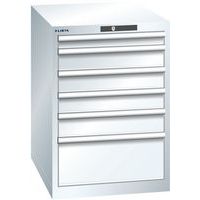Dílenská zásuvková skříň LISTA, 6 zásuvek = 1x 75 + 3x 100 + 1x 150 + 1x 250mm, 564x725x850mm, bílá