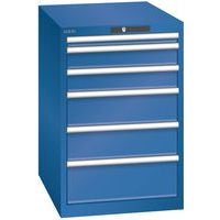 Dílenská zásuvková skříň LISTA, 6 zásuvek = 1x 50 + 2x 100 + 2x 150 + 1x 200mm, 564x725x850mm, tmavě modrá