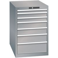 Dílenská zásuvková skříň LISTA, 7 zásuvek = 1x 50 + 2x 75 + 2x 100 + 1x 150 + 1x 200mm, 564x725x850mm