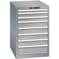 Dílenská zásuvková skříň LISTA, 564x725x850mm, 8 zásuvek, šedá/stříbrná