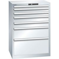 Dílenská zásuvková skříň LISTA, 7 zásuvek = 1x50 + 2x75 + 2x100 + 1x200 + 1x300mm, 717x572x1000mm, šedá