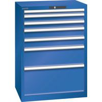 Dílenská zásuvková skříň LISTA, 7 zásuvek = 1x50 + 2x75 + 2x100 + 1x200 + 1x300mm, 717x572x1000mm