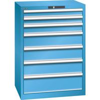 Dílenská zásuvková skříň LISTA, 7 zásuvek =2x75 + 1x100 + 3x150 + 1x200mm, 717x572x1000mm, světle modrá