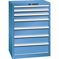 Dílenská zásuvková skříň LISTA, 7 zásuvek =2x75 + 1x100 + 3x150 + 1x200mm, 717x572x1000mm, modrá