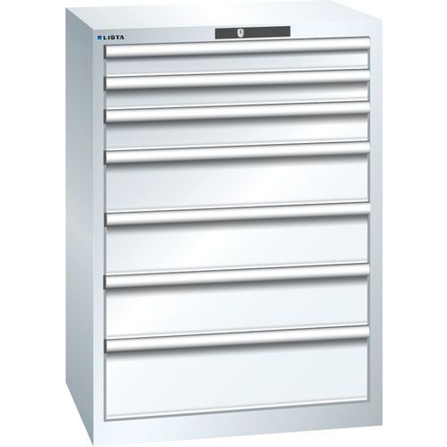 Dílenská zásuvková skříň LISTA, 7 zásuvek =2x75 + 1x100 + 3x150 + 1x200mm, 717x572x1000mm, bílá
