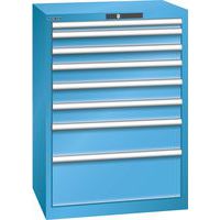 Dílenská zásuvková skříň LISTA, 717x572x1000mm, 8 zásuvek, světle modrá