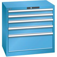 Dílenská zásuvková skříň LISTA, 5 zásuvek = 2x75 + 2x100 + 1x250 mm, 717x572x700mm, světle modrá