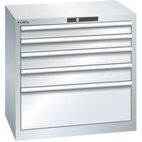 Dílenská zásuvková skříň LISTA, 5 zásuvek = 2x75 + 2x100 + 1x250 mm, 717x572x700mm, šedá