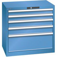 Dílenská zásuvková skříň LISTA, 5 zásuvek = 2x75 + 2x100 + 1x250 mm, 717x572x700mm, modrá