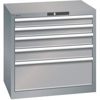 Dílenská zásuvková skříň LISTA, 5 zásuvek = 2x75 + 2x100 + 1x250 mm, 717x572x700mm, šedá/stříbrná