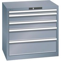 Dílenská zásuvková skříň LISTA, 5 zásuvek = 1x50 + 2x100 + 1x150 + 1x200mm, 717x572x700mm, tmavě šedá