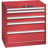 Dílenská zásuvková skříň LISTA, 5 zásuvek = 1x50 + 2x100 + 1x150 + 1x200mm, 717x572x700mm, červená