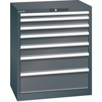 Dílenská zásuvková skříň LISTA, 7 zásuvek = 1x50 + 2x75 + 2x100 + 1x150 +1x200mm, 717x572x850mm, černá
