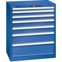 Dílenská zásuvková skříň LISTA, 7 zásuvek = 1x50 + 2x75 + 2x100 + 1x150 +1x200mm, 717x572x850mm