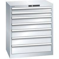 Dílenská zásuvková skříň LISTA, 7 zásuvek = 2x75 + 2x100 + 2x125 + 1x150mm, 717x572x850mm, šedá