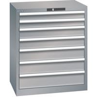 Dílenská zásuvková skříň LISTA, 7 zásuvek = 2x75 + 2x100 + 2x125 + 1x150mm, 717x572x850mm, šedá/stříbrná