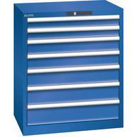 Dílenská zásuvková skříň LISTA, 7 zásuvek = 2x75 + 2x100 + 2x125 + 1x150mm, 717x572x850mm, fluorescentní modrá