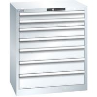 Dílenská zásuvková skříň LISTA, 7 zásuvek = 2x75 + 2x100 + 2x125 + 1x150mm, 717x572x850mm, bílá