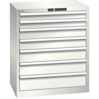 Dílenská zásuvková skříň LISTA, 7 zásuvek = 2x75 + 2x100 + 2x125 + 1x150mm, 717x572x850mm, světle šedá