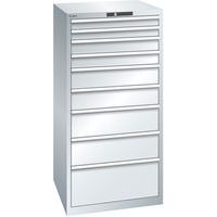 Dílenská zásuvková skříň LISTA, 9 zásuvek = 2 x 75 / 2 x 100 / 2 x 150 / 2 x 200 / 1 x 300mm, 717x725x1450mm