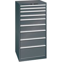 Dílenská zásuvková skříň LISTA, 9 zásuvek = 2 x 75 / 2 x 100 / 2 x 150 / 2 x 200 / 1 x 300mm, 717x725x1450mm