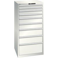 Dílenská zásuvková skříň LISTA, 9 zásuvek = 2 x 75 / 2 x 100 / 2 x 150 / 2 x 200 / 1 x 300mm, 717x725x1450mm