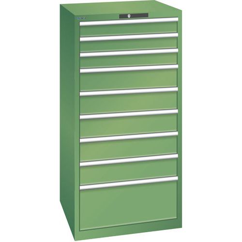 Dílenské zásuvkové skříně LISTA, 717x725x1450mm, 9 nebo 10 zásuvek, nosnost zásuvky 75 nebo 200kg