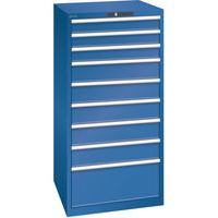 Dílenská zásuvková skříň LISTA, 9 zásuvek = 3 x 100 / 5 x 150 / 1 x 300mm, 717x725x1450mm, nosnost 75kg