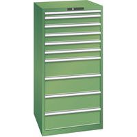 Dílenská zásuvková skříň LISTA, 717x725x1450mm, 10 zásuvek, nosnost 75kg, zelená
