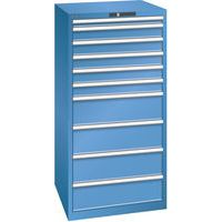Dílenská zásuvková skříň LISTA, 717x725x1450mm, 10 zásuvek, nosnost 75kg, modrá